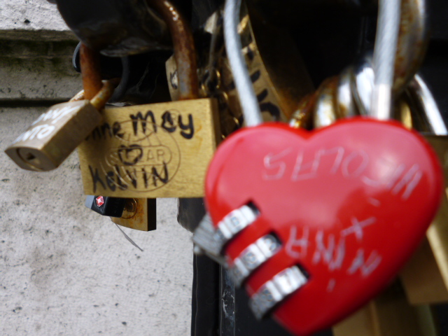 セーヌ川にかけられた橋のひとつである芸術橋の鉄骨部分にかけてるたくさんの鍵。